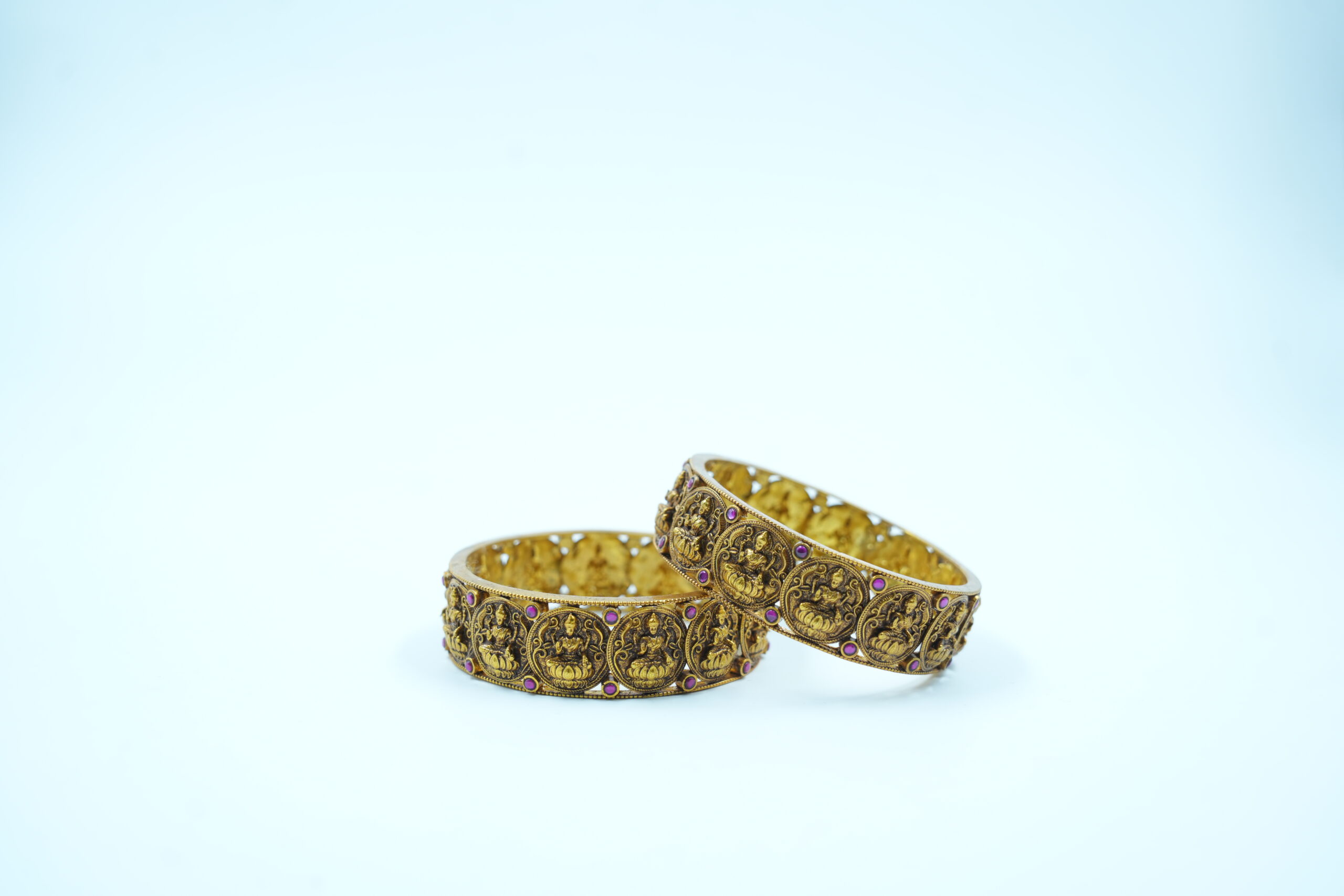 Designed to represent prosperity, wealth, and positive energy, these bangles are ideal for weddings, festive occasions, temple visits, and special ceremonies. The detailed craftsmanship gives a real gold appearance while maintaining comfort and durability for long wear.